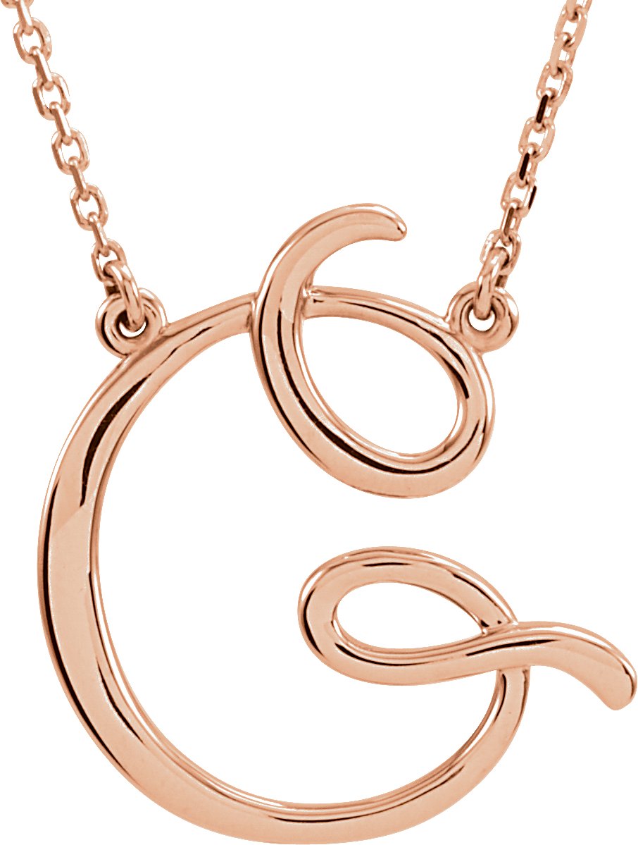 84635 / Necklace / 14K Rose / Initial G / Polished / Script Initial 16 Inch Necklace