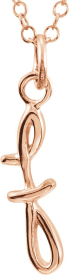 85899 / 14K Rose / F / Polished / 18.00 Inch Lowercase Script Initial Necklace
