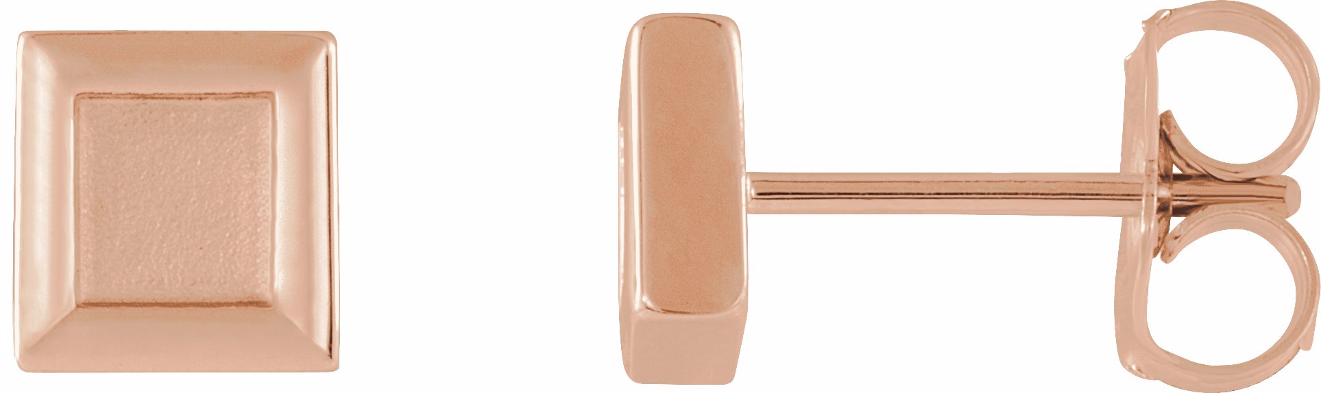 86659 / 14K Rose / Pair / Polished / Square Petite Earring With Back