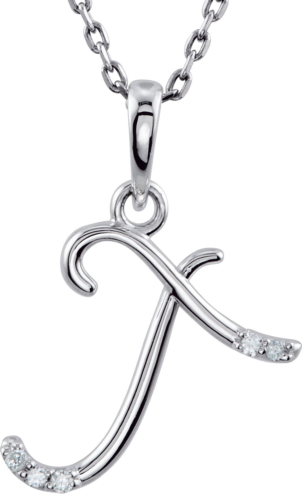 85557 / Necklace / Set / 14K White / T / Polished / .025 Ctw Diamond Initial Necklace