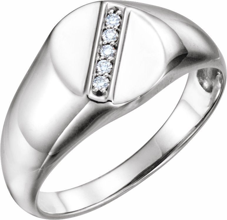 14K White .08 CTW Diamond 11x10 mm Oval Signet Ring - 9840600P