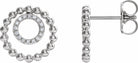 653412 / 14K White / Pair / Polished / 1/10 Ctw Diamond Beaded Circle Earrings With Backs