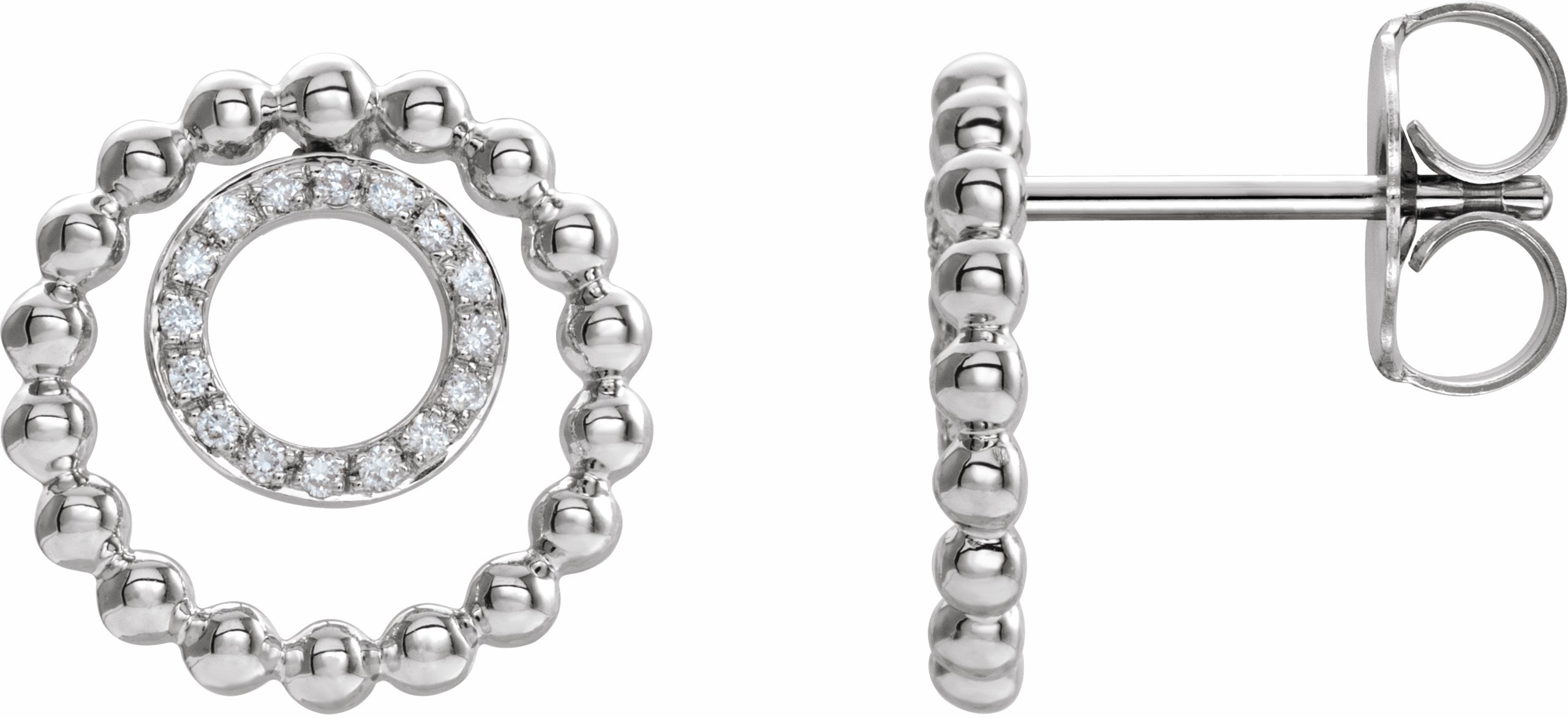 14K White 1/10 CTW Diamond Beaded Circle Earrings - 653412601P