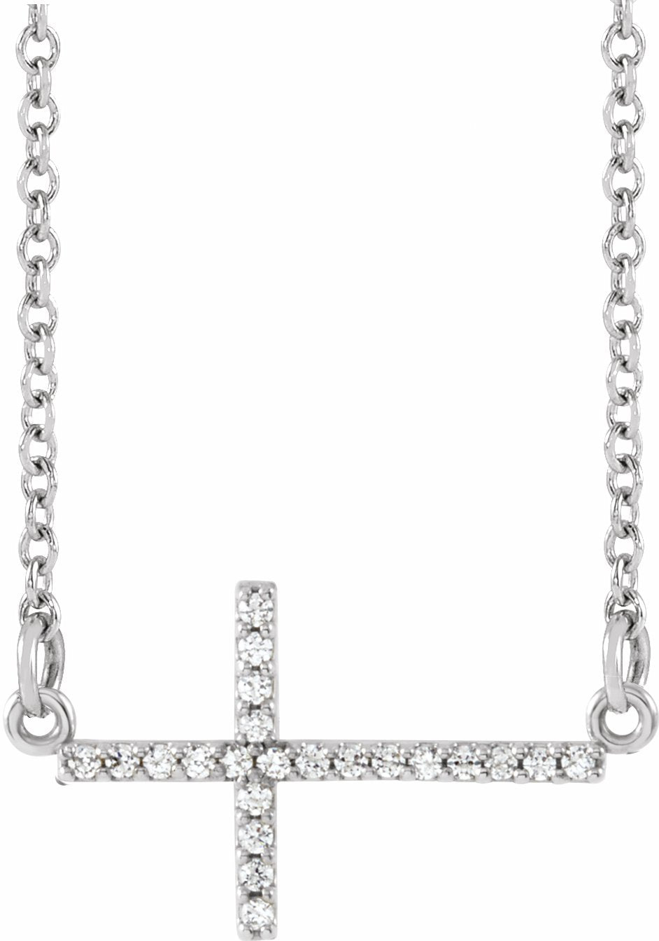 R42323 / Necklace / Set / 14K White / Diamond / 1/10 Ctw / Polished / 1/10 Ctw Dia Sideways Cross Necklace
