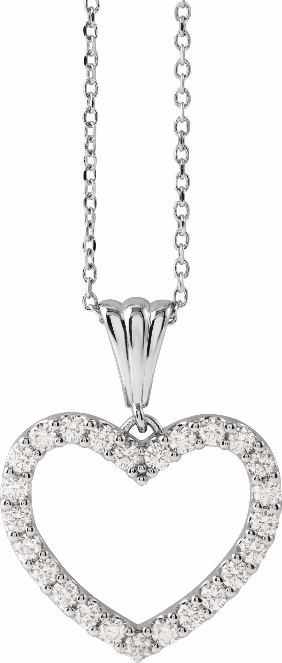 67533 / 14K White / 1/2Cttw I1,Gh 18 / Polished / Diamond Heart Necklace 18