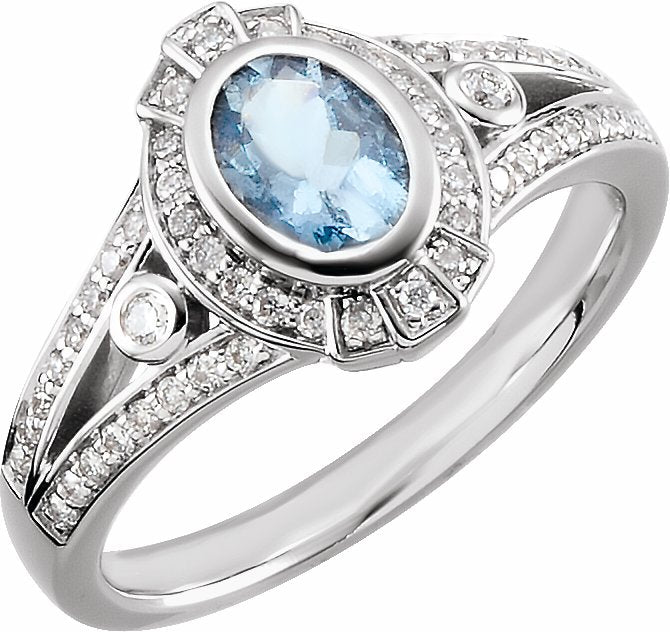66146 / 14K White / 1/3 Ct Tw/07.00X05.00 Mm / Polished / Genuine Aqua & Diamond Ring