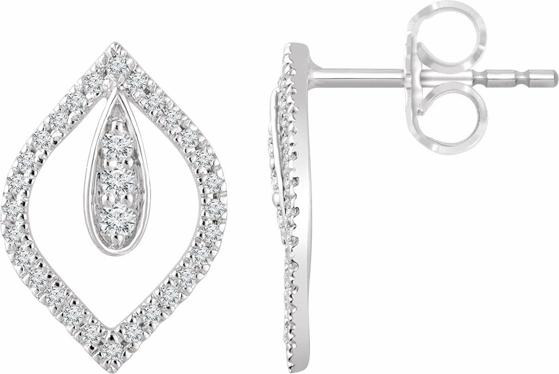 652859 / Set / 14K White / Pair / Polished / 1/4 Ctw Diamond Teardrop Earrings With Backs