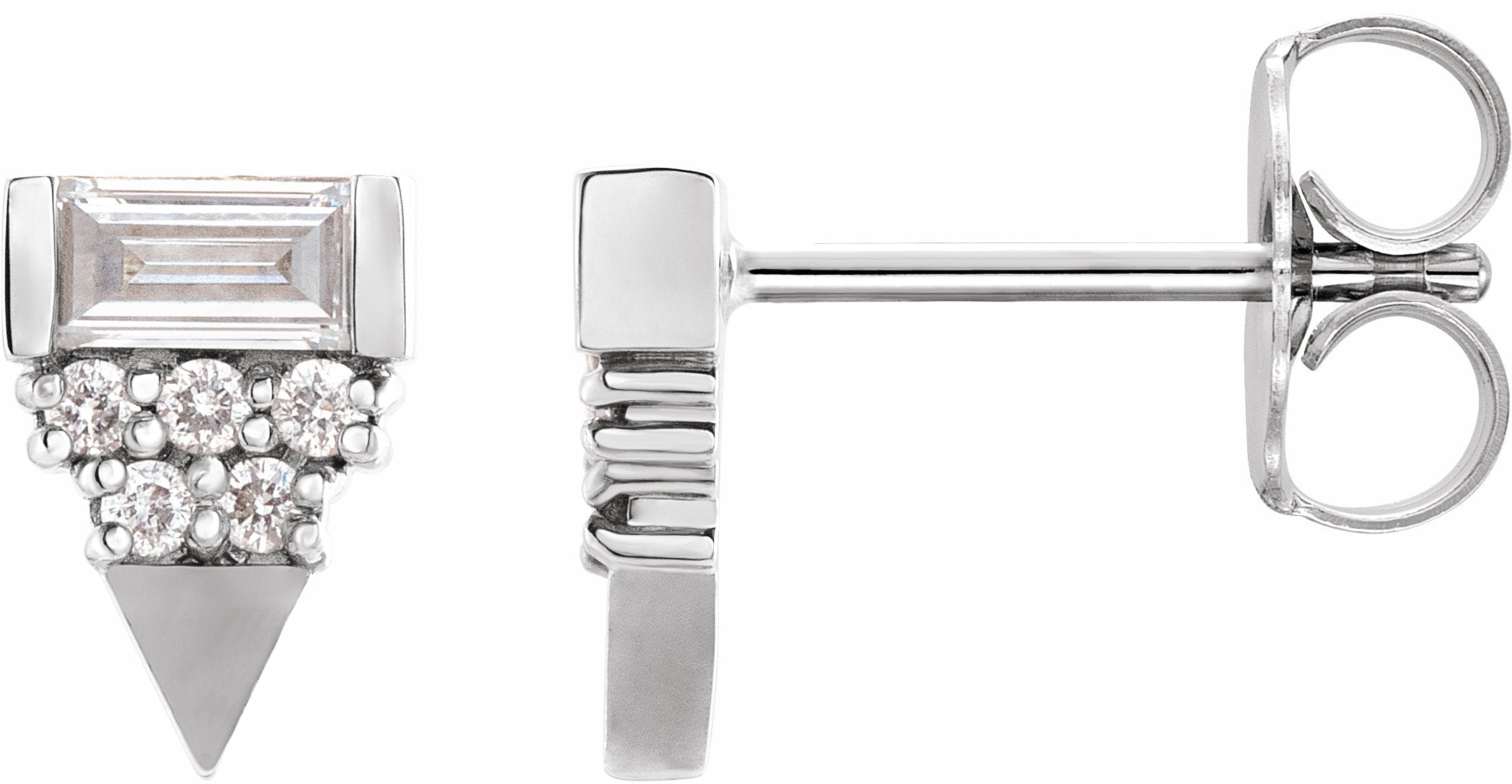 87063 / Earring / Set / Diamond / Straight Baguette / 4 X 2 Mm / 14K White / Pair / Friction Backs Included / Polished / 1/4 Ctw Diamond Geometric Earrings