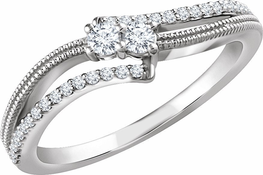 652224 / 14K White / 1/4 Ctw Diamond Two Stone Ring