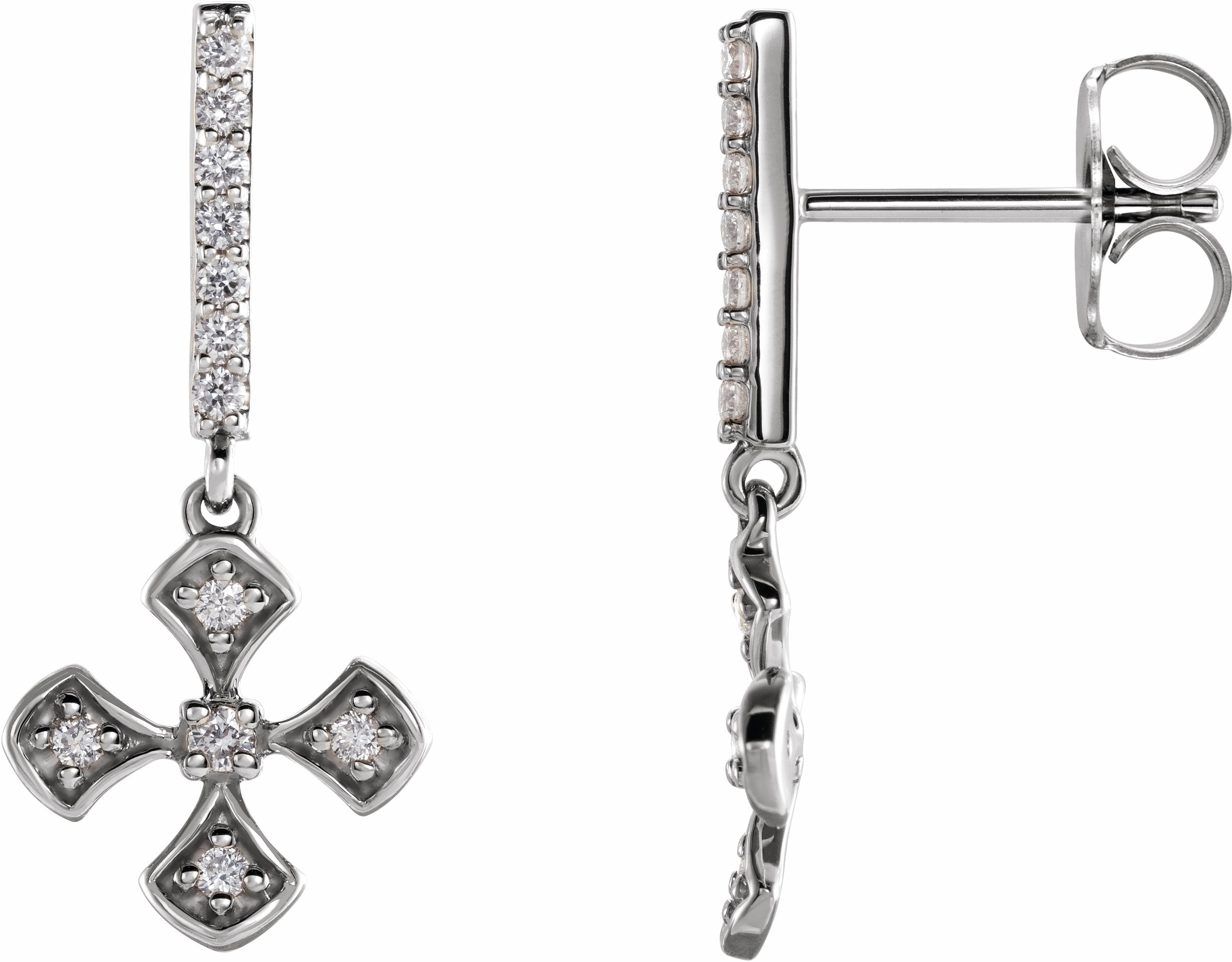 653588 / Set / 14K White / Pair / Polished / 1/5 Ctw Diamond Cross Dangle Earrings
