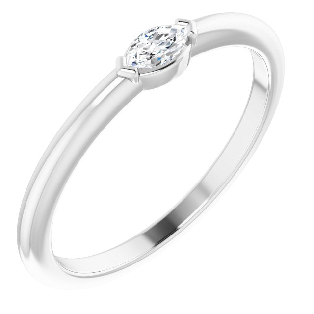 124565 / Ring / Set / 14K White / Marquise / 4.5 X 2.5 Mm / Polished / 1/8 Ctw Diamond Solitaire V-End Ring