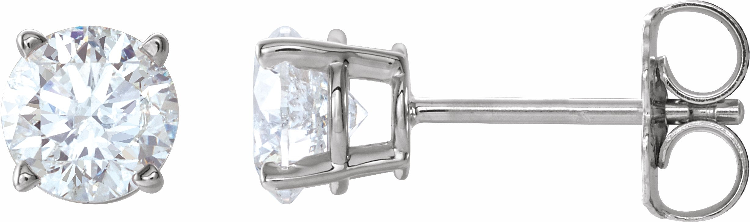 1874 / 14K White / Set / Round / Diamond / Pair / 5Mm :: 1 Ctw / I3, G-H / Friction Post / Friction Backs Included / 4-Prong / Polished / Light Basket Solitaire Stud Earrings