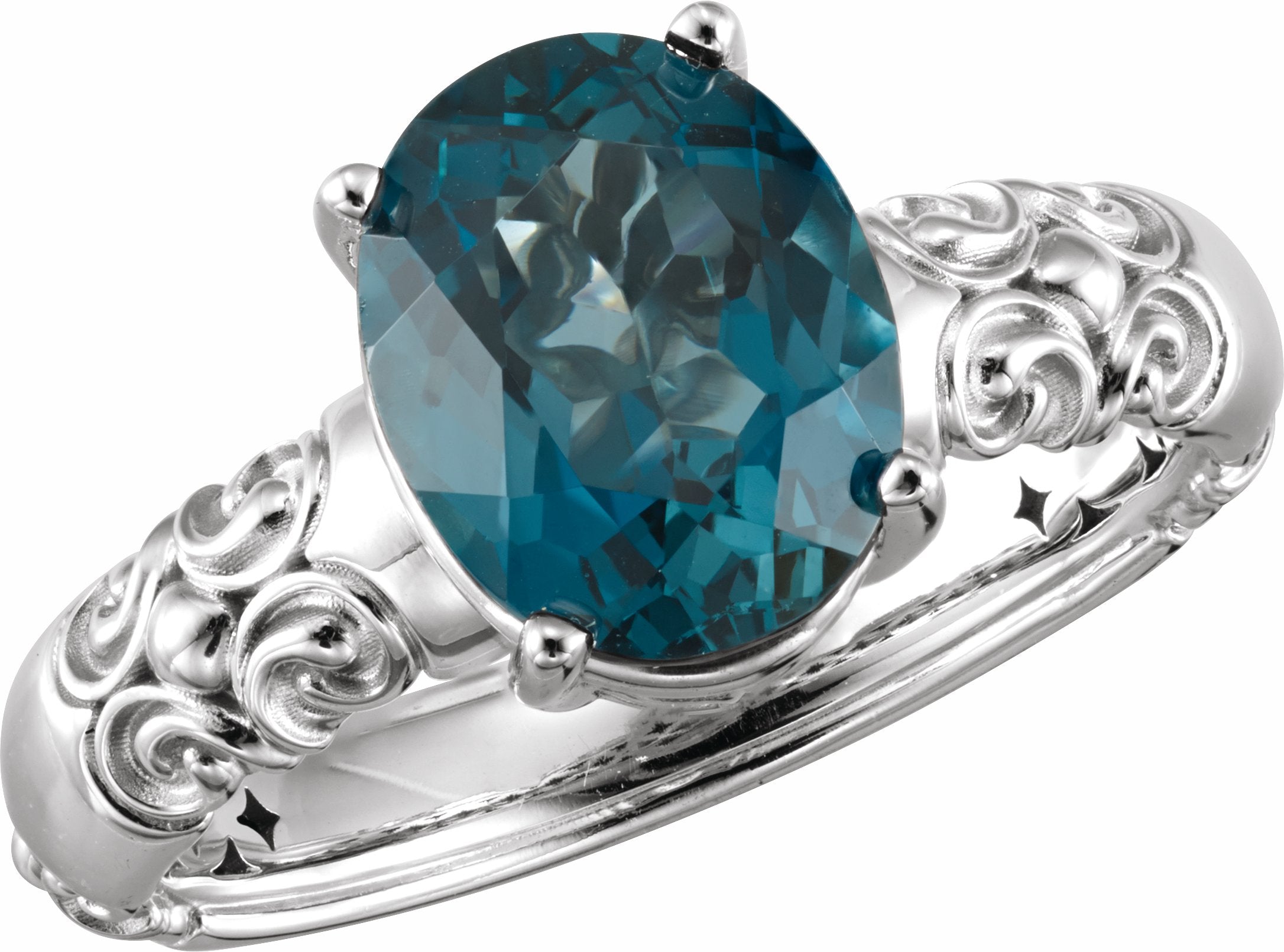71613 / Ring / Set / 14K White / London Blue Topaz / Oval / 10 X 8 Mm / Polished / London Blue Topaz Sculptural R