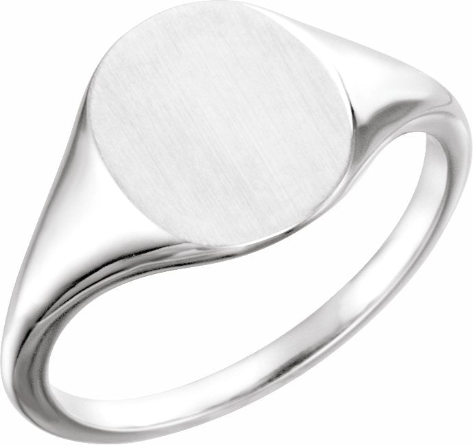 51552 / 14K White / Oval / 11 X 9 Mm / Brush Finished / Polished / Signet Ring