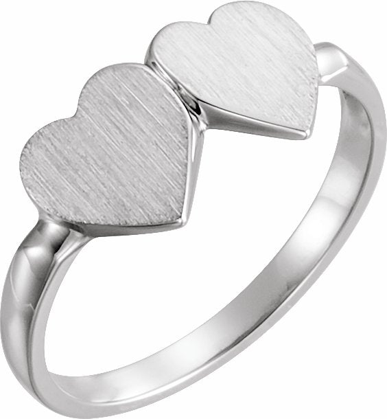 14K White 13.8x7 mm Double Heart Signet Ring - 41934650P