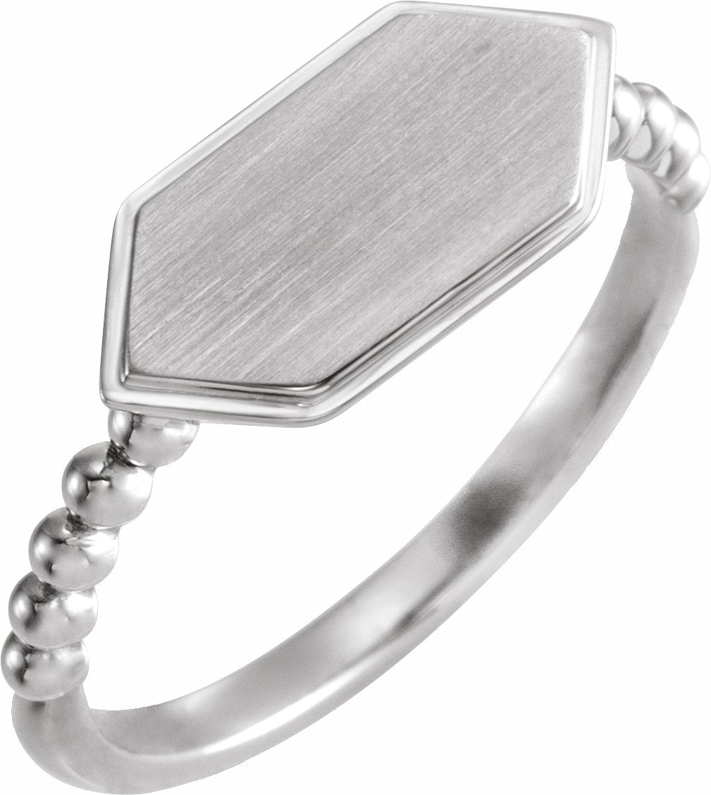 52058 / 14K White / Hexagon / 15.3 X 7.25 Mm / Brush Finished / Polished / Signet Ring