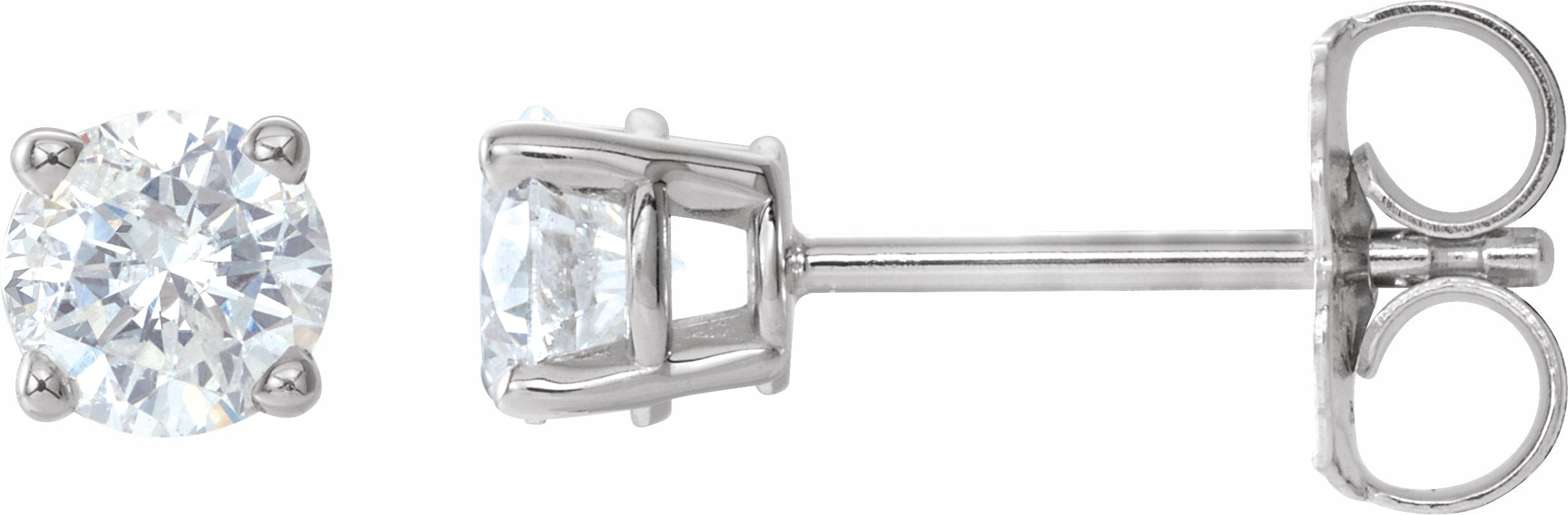 1874 / 14K White / Set / Round / Diamond / Pair / 4.5Mm :: 3/4 Ctw / I3, G-H / Friction Post / Friction Backs Included / 4-Prong / Polished / Light Basket Solitaire Stud Earrings