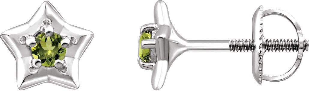 14K White 3 mm Round August Youth Star Birthstone Earrings - 653421659P