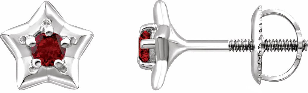 653421 / Set / 14K White / January / Pair / Threaded Post / Without Box / Polished / Star Youth Earrings With Threaded Backs