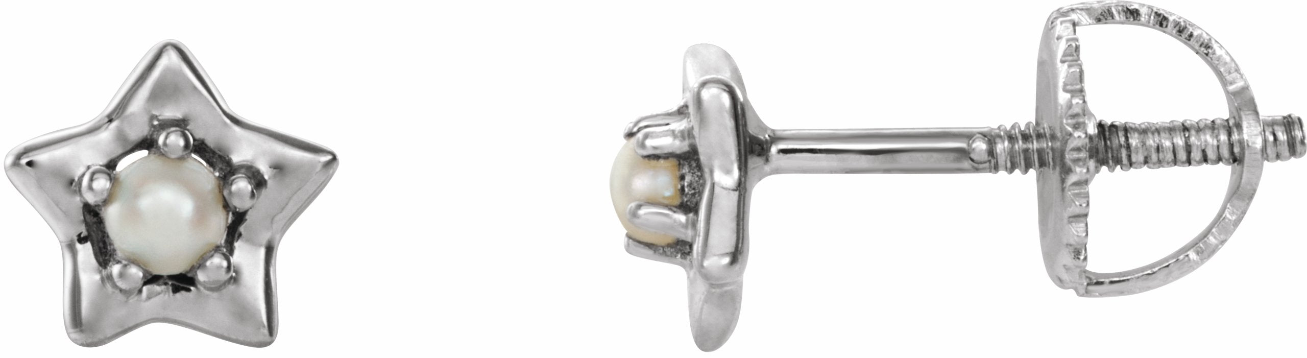653421 / Set / 14K White / June / Pair / Threaded Post / Without Box / Polished / Star Youth Earrings With Threaded Backs