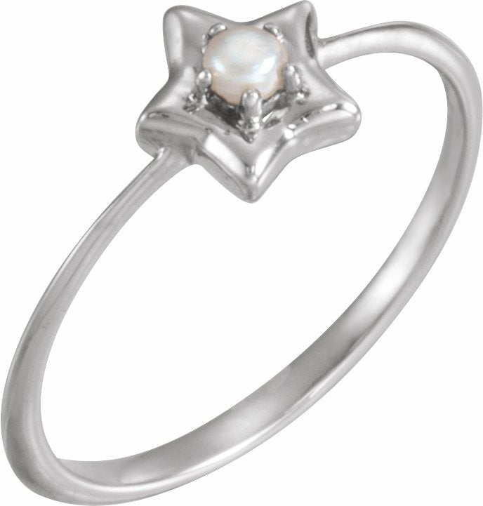 14K White 3 mm Round June Youth Star Birthstone Ring - 653419635P