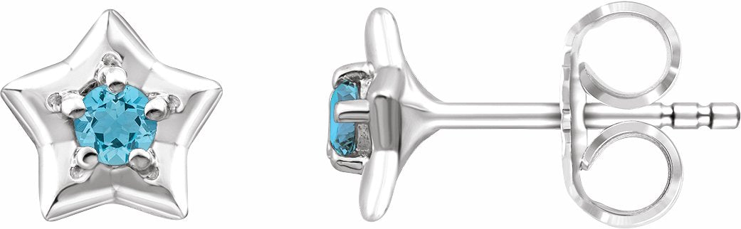 14K White 3 mm Round March Youth Star Birthstone Earrings - 653421608P