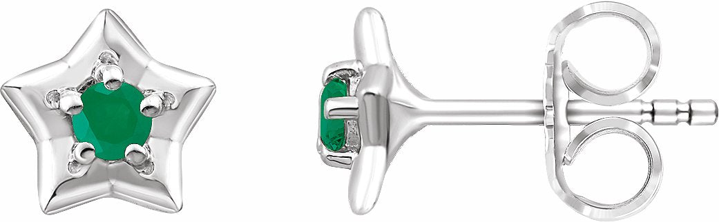 14K White 3 mm Round May Youth Star Birthstone Earrings - 653421614P