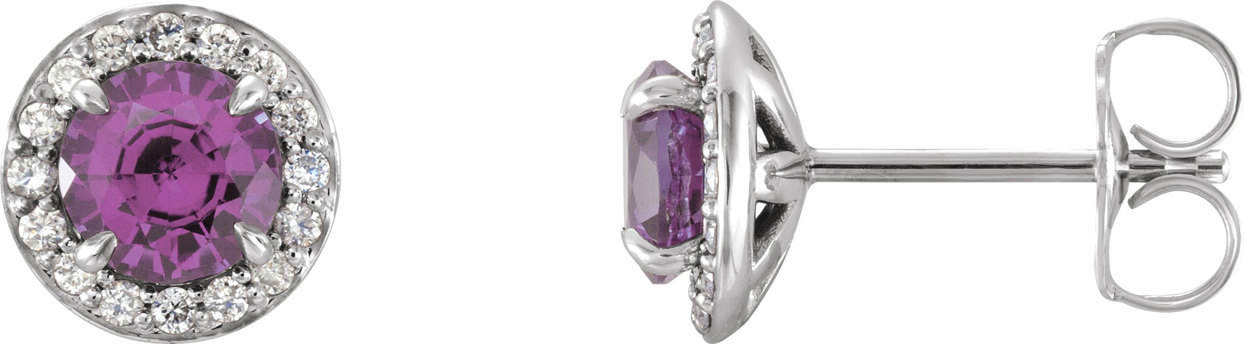 86458 / Set / 14K White / Amethyst / 4 Mm / Pair / Polished / Genuine Amethyst And 1/10 Ctw Diamond Halo-Style Earrings