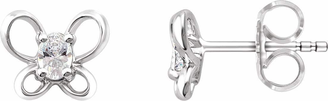 14K White 4x3 mm Oval April Youth Butterfly Birthstone Earrings - 653416611P