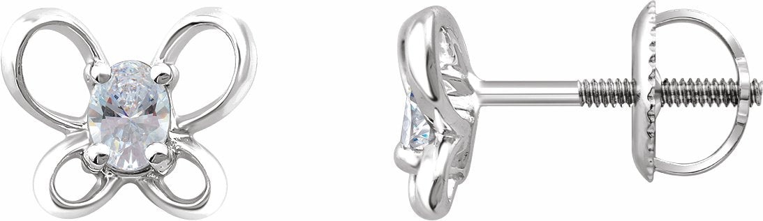 14K White 4x3 mm Oval April Youth Butterfly Birthstone Earrings - 653416647P
