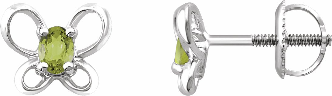 14K White 4x3 mm Oval August Youth Butterfly Birthstone Earrings - 653416659P