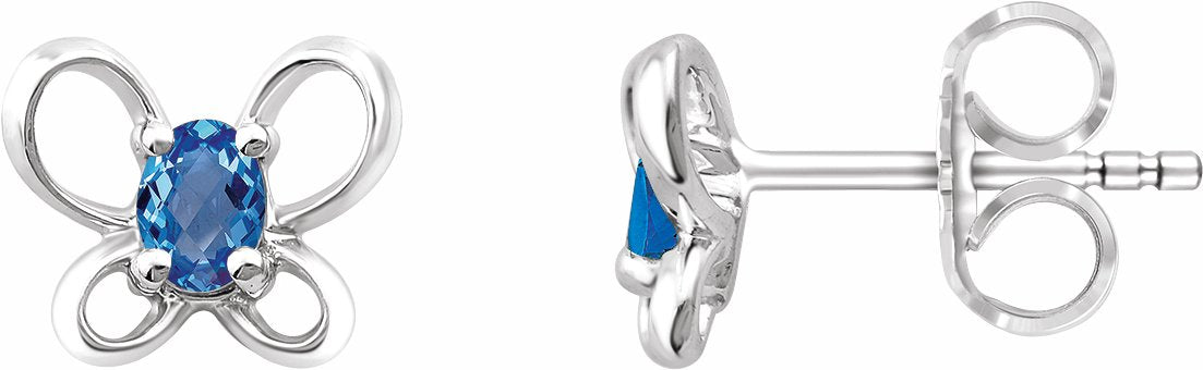 14K White 4x3 mm Oval December Youth Butterfly Birthstone Earrings - 653416632P