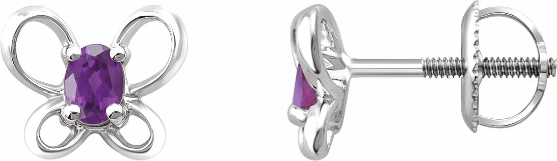 14K White 4x3 mm Oval February Youth Butterfly Birthstone Earrings - 653416641P