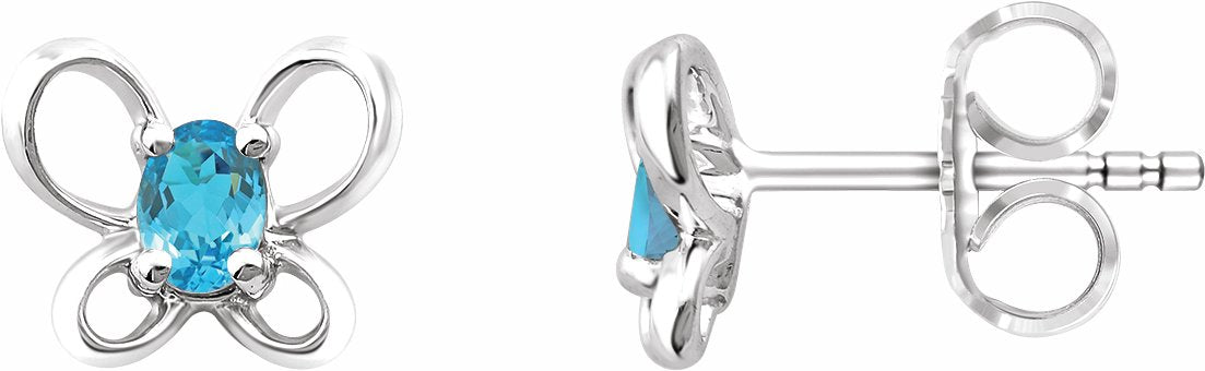 14K White 4x3 mm Oval March Youth Butterfly Birthstone Earrings - 653416608P