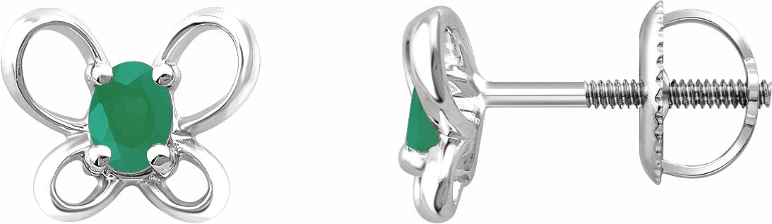 14K White 4x3 mm Oval May Youth Butterfly Birthstone Earrings - 653416650P