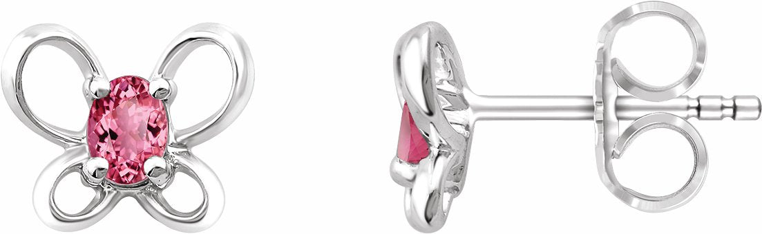 14K White 4x3 mm Oval October Youth Butterfly Birthstone Earrings - 653416626P