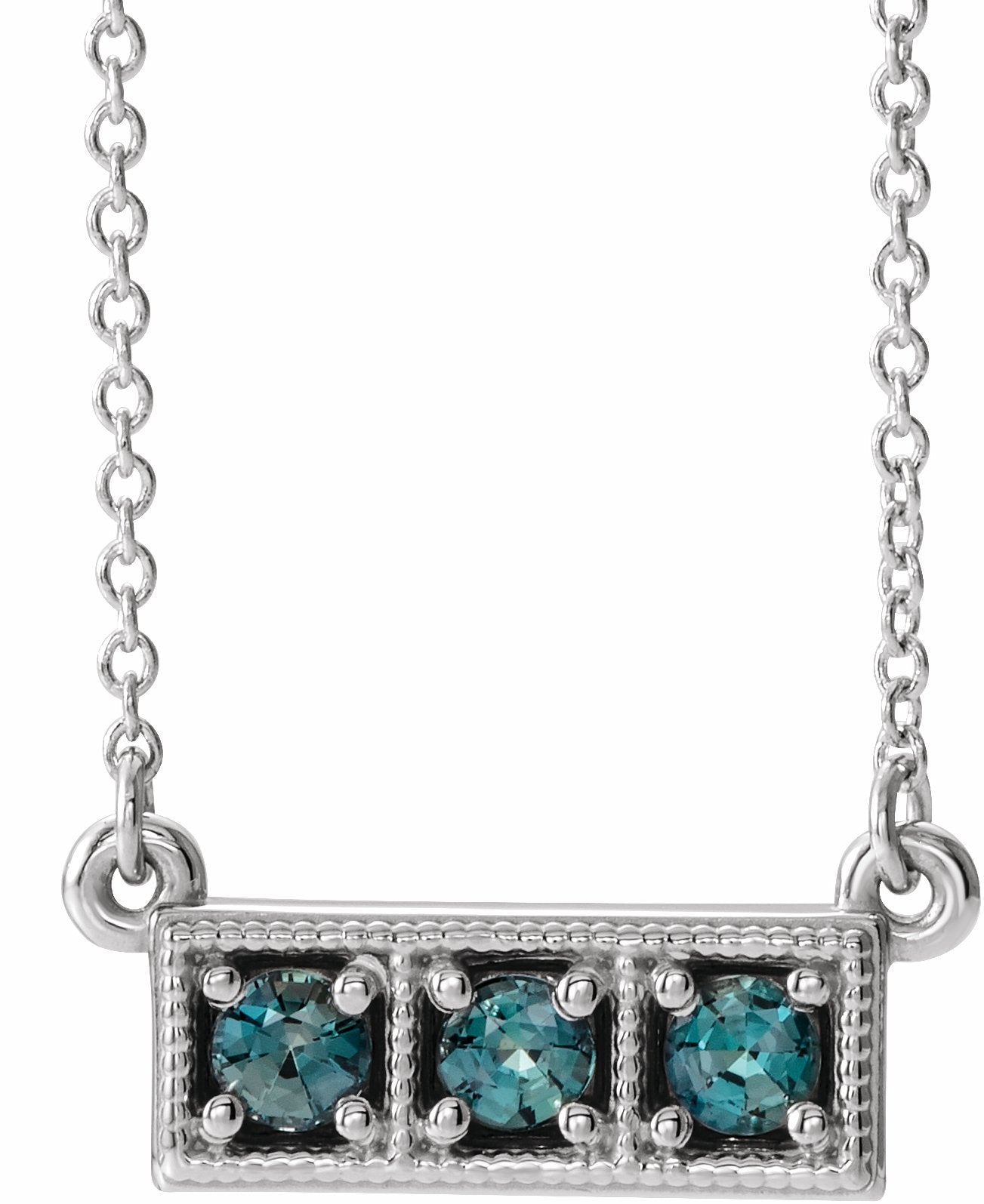 86612 / Necklace / Set / 14K White / Alexandrite / 3 Mm / Polished / Genuine Alexandrite Bar Necklace