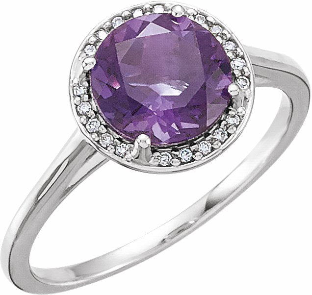 71632 / Set / 14K White / Amethyst / Round / 8 Mm / Polished / Genuine Amethyst And .05 Ctw Diamond Ring