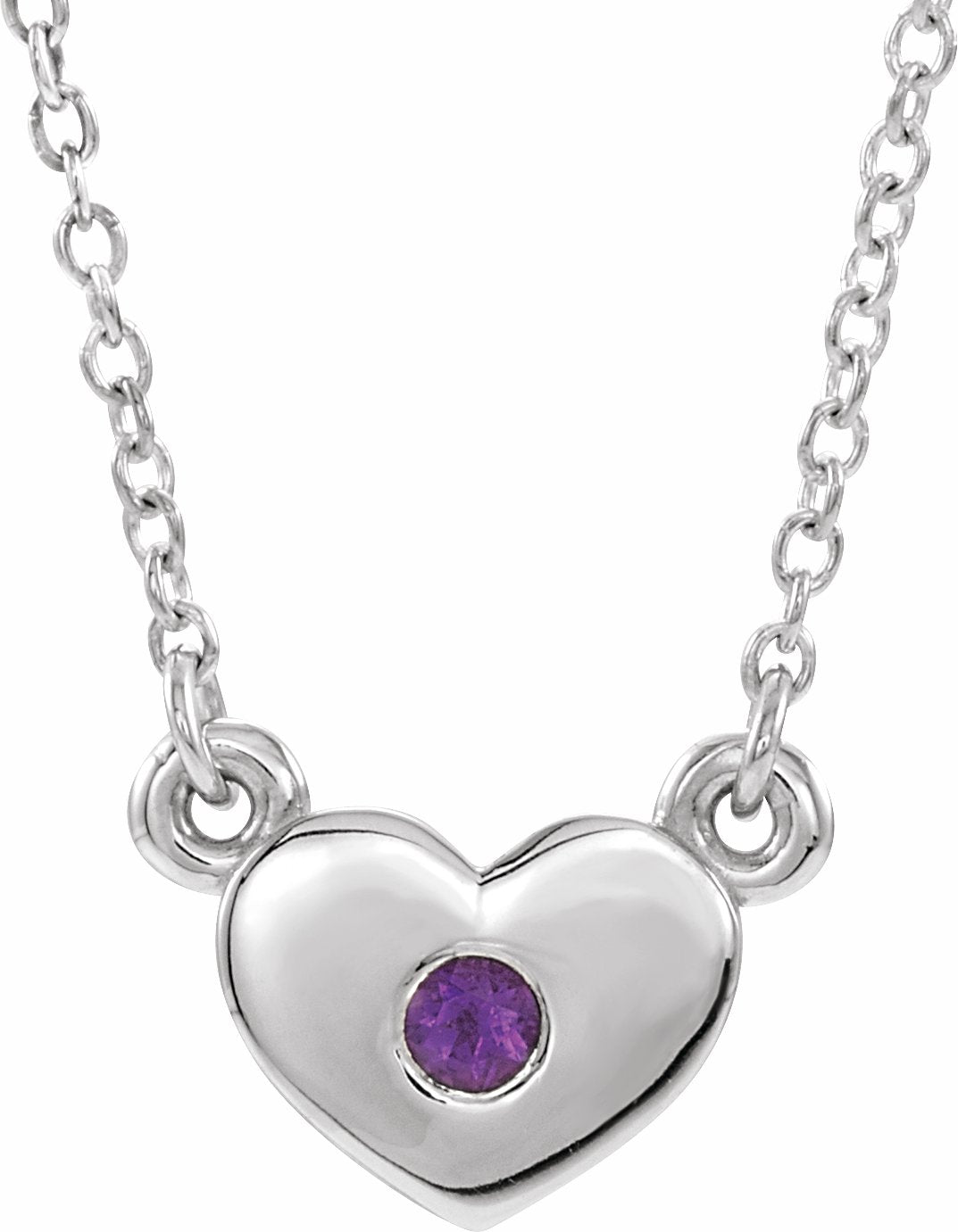 14K White Amethyst Heart 16 Necklace - 8633560004P
