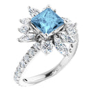 72062 / Set / 14K White / Polished / Genuine Aquamarine And 1 1/6 Ctw Diamond Ring
