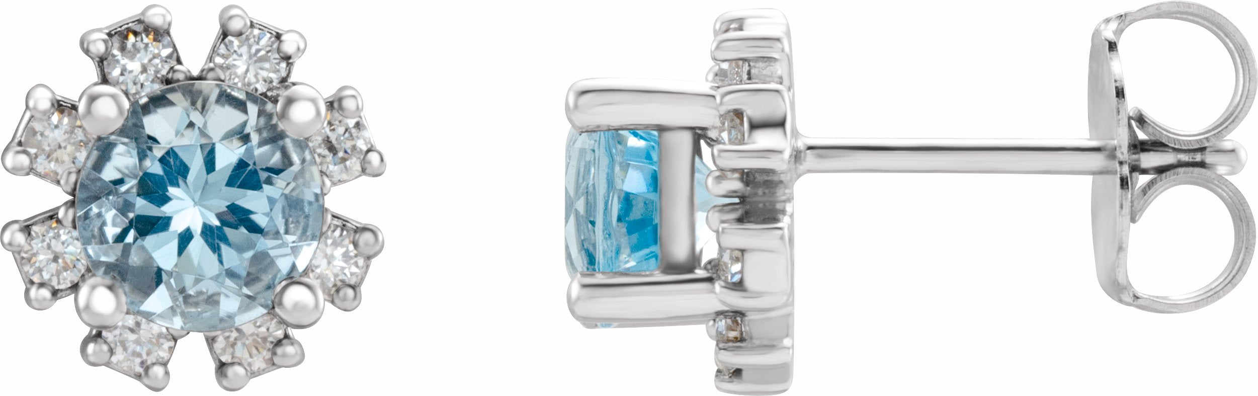 2000028 / Set / 14K White / Aquamarine / 6 Mm / Pair / Polished / Genuine Aquamarine And 1/2 Ctw Diamond Earrings