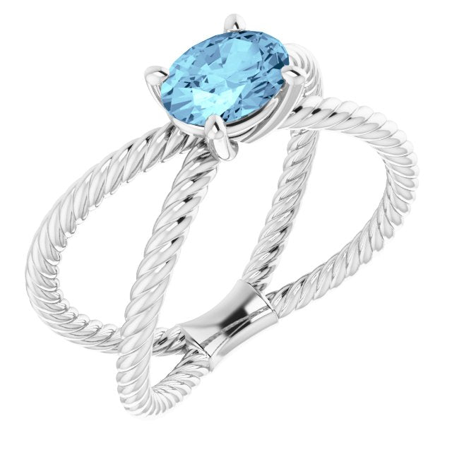 71881 / Set / 14K White / Oval / 7 X 5 Mm / Polished / Genuine Aquamarine Rope Ring
