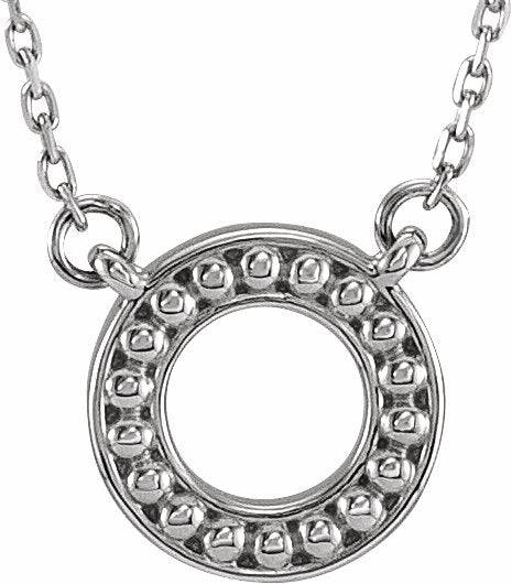 86568 / Necklace / 14K White / Polished / Beaded Circle 16-18 Inch Necklace