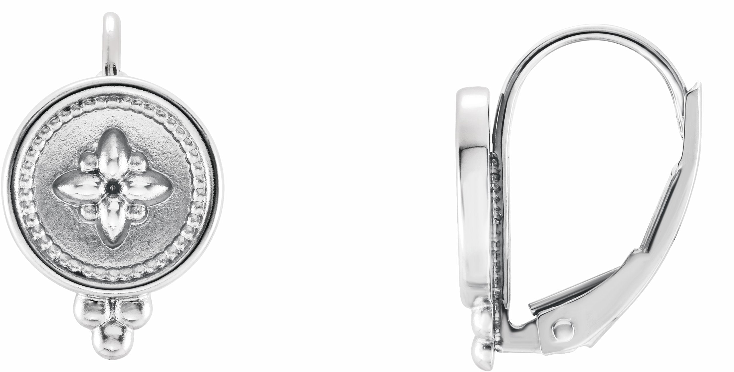 86552 / 14K White / Pair / Polished / Beaded Lever Back Earrings