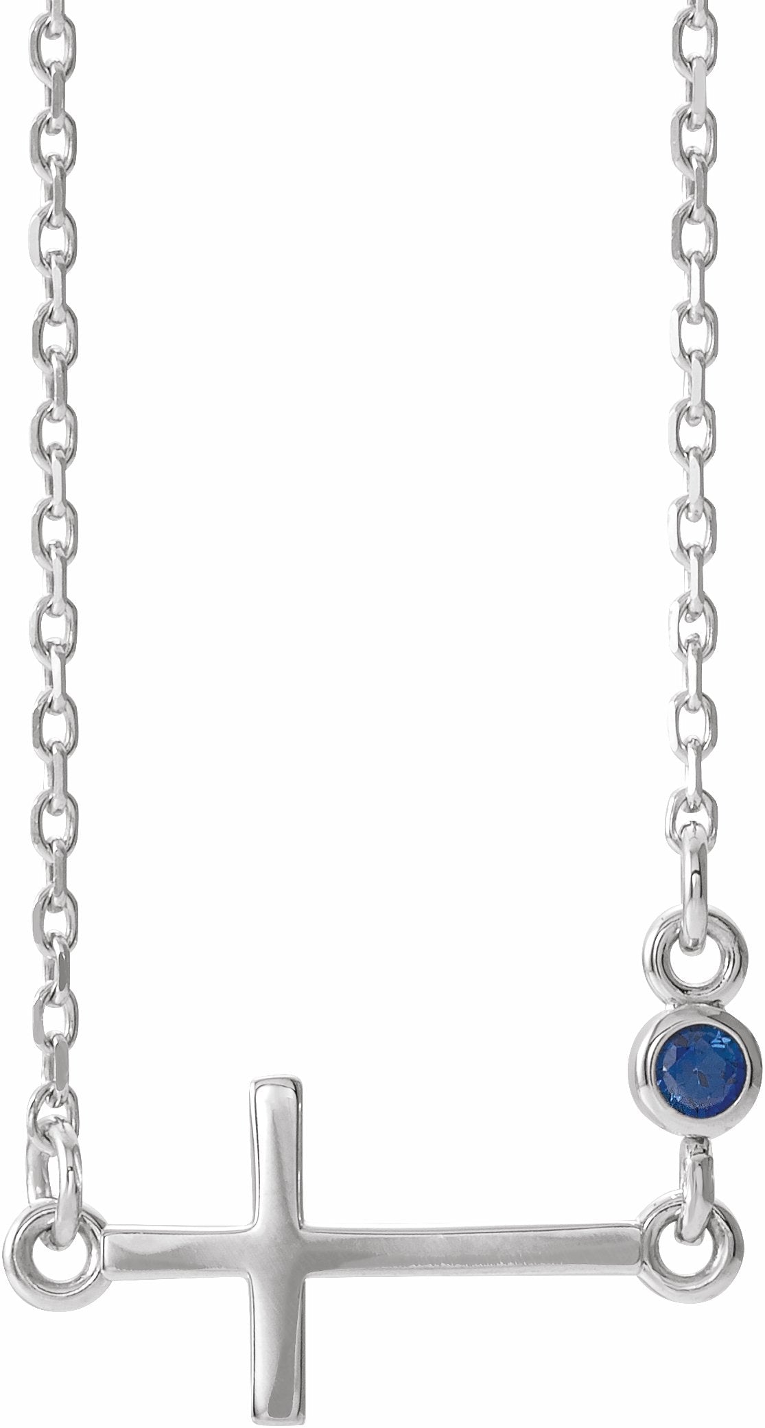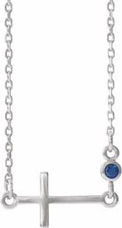 R42355 / Set / 14K White / Blue Sapphire / Polished / September Sideways Cross Adjustable Necklace