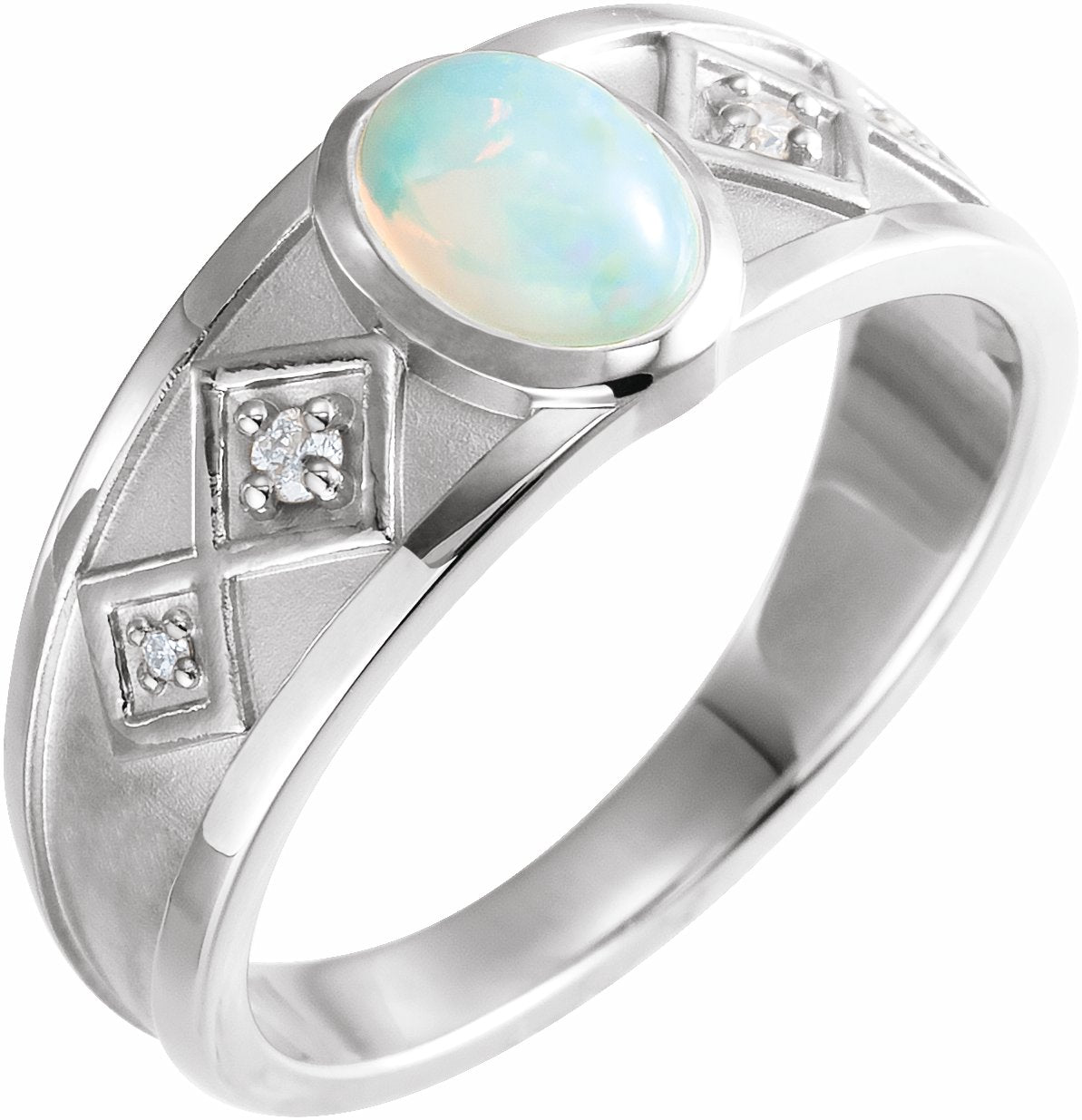 72105 / Set / 14K White / White Ethiopian Opal / Polished / Genuine White Ethiopian Opal And .05 Ctw Diamond Ring