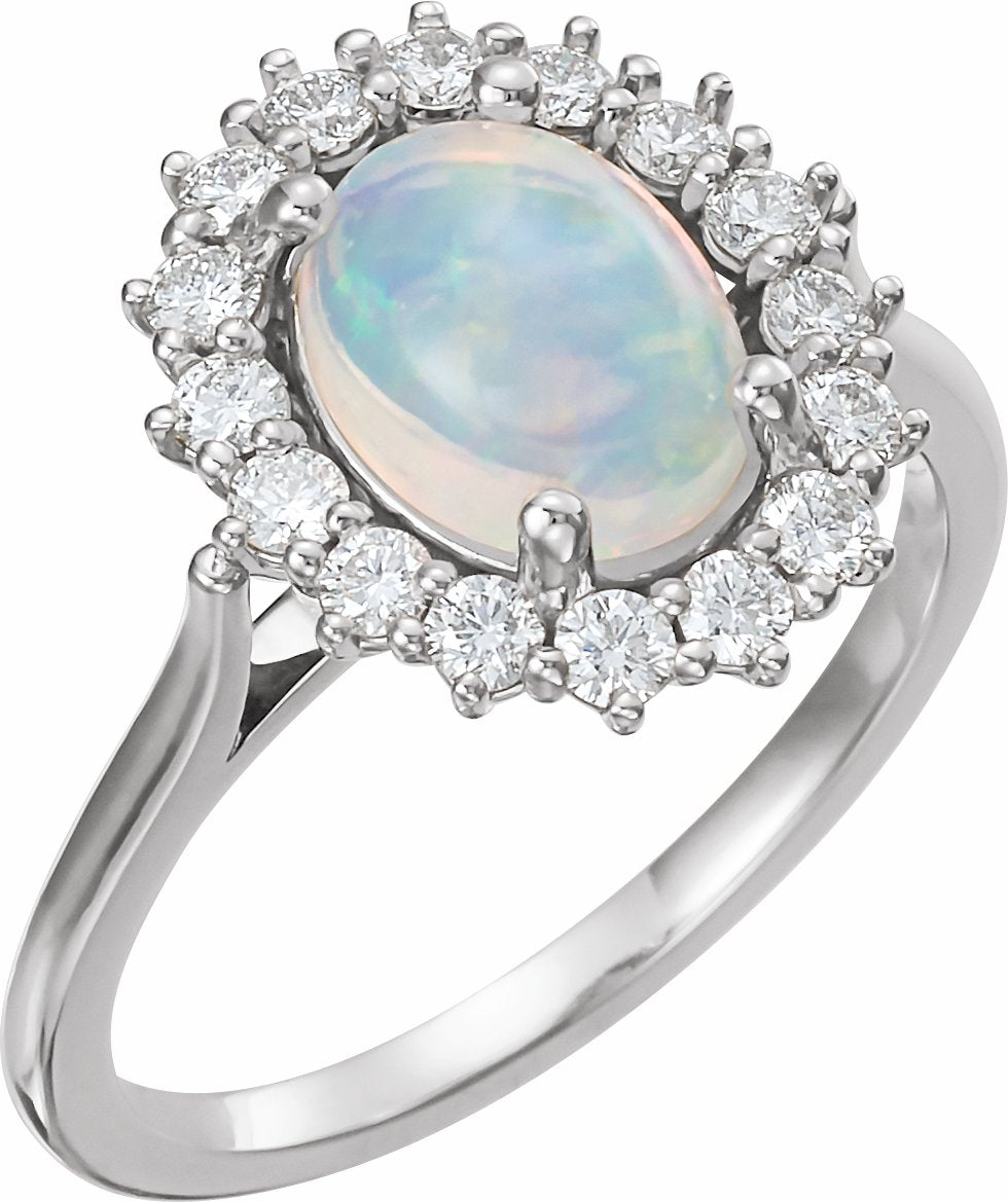 72070 / Set / 14K White / White Ethiopian Opal / Oval / 8 X 6 Mm / Polished / Genuine Ethiopian Opal And 3/8 Ctw Diamond Ring