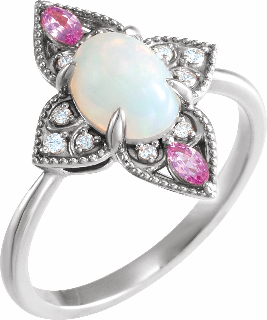 14K White Ethiopian Opal, Pink Sapphire & .05 CTW Diamond Vintage-Inspired Ring - 72095600P