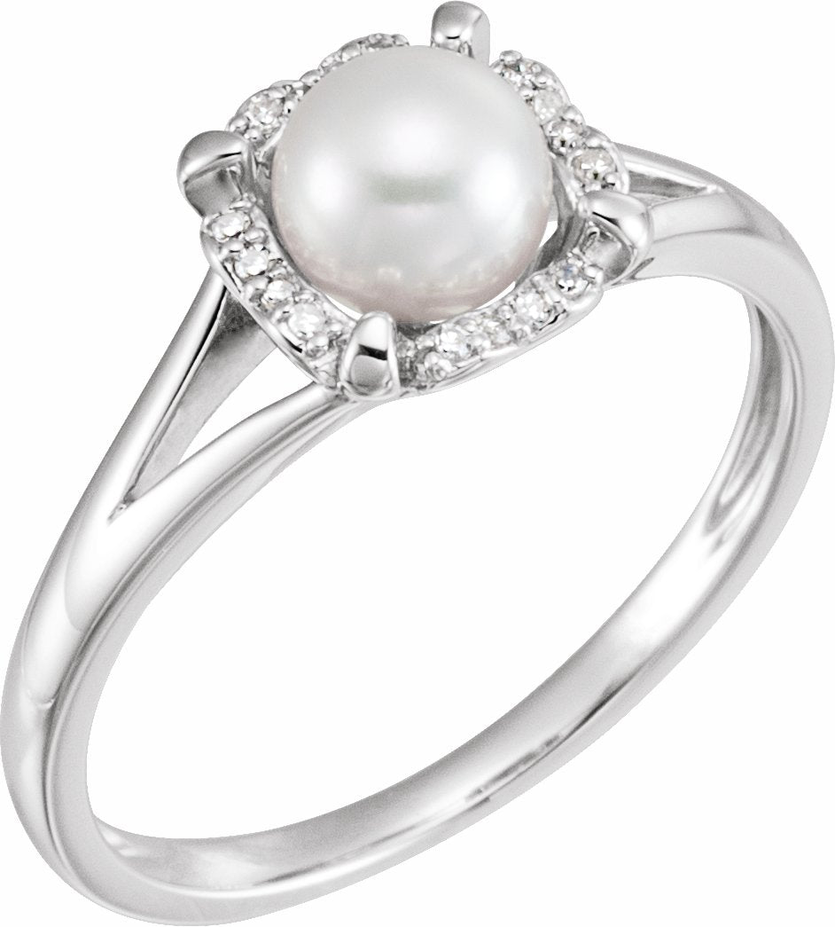 14K White Freshwater Cultured Pearl & .05 CTW Diamond Ring - 65195260006P