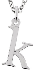 85780 / Necklace / 14K White / K / Polished / Lowercase Initial 16 Inch Necklace